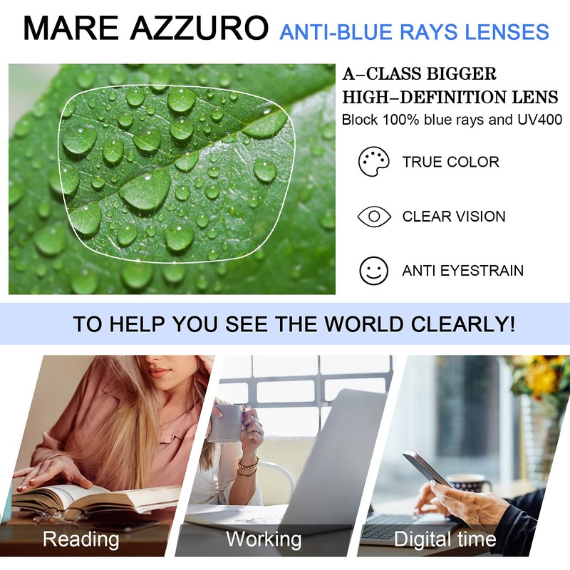 MARE AZZURO blue light blocking reading glasses for women