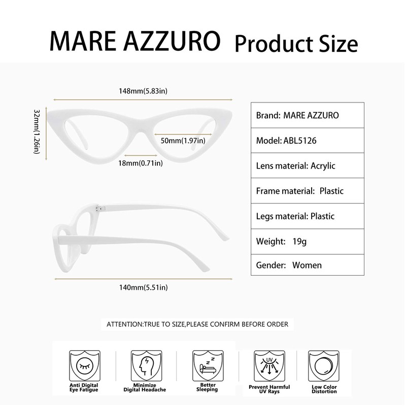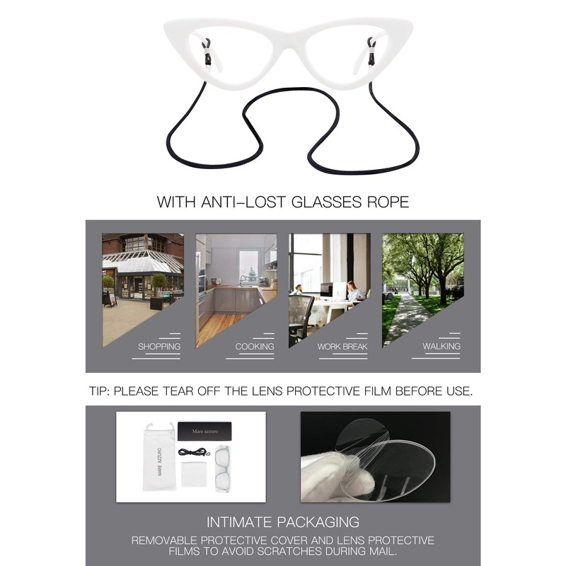 MARE AZZURO Cateye Computer Reading Glasses Women Blue Light Blocking Readers 0 1.00 1.25 1.50 1.75 2.00 2.25 2.50 2.75 3.00 3.50 4.00 5.00 6.00 (White, 150)