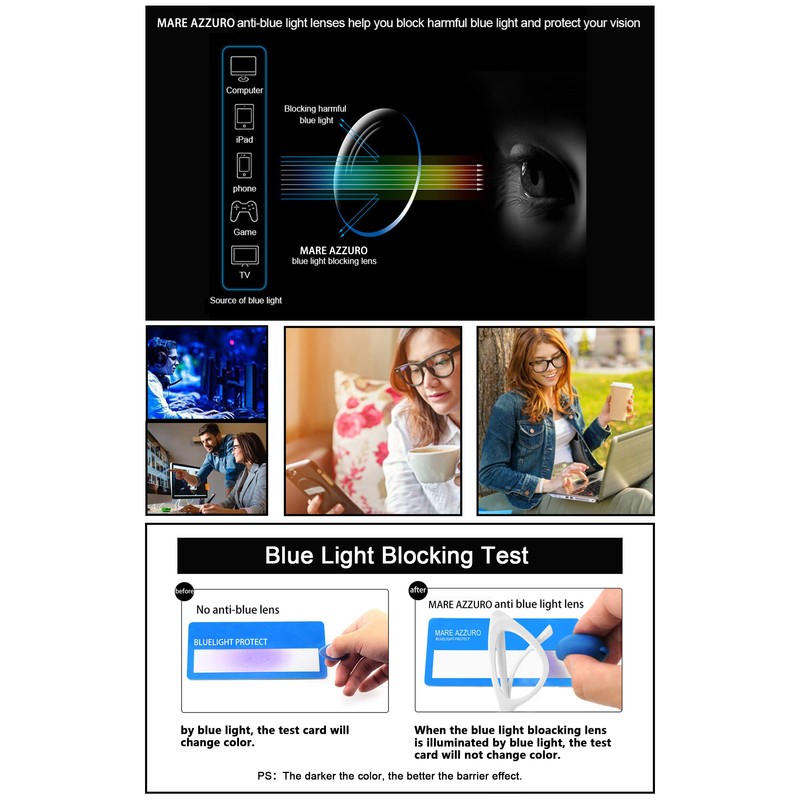 - UV400 eye protection : Top rated blue light lenses can against 100% of both UVA and UVB form sunlight, and also effectively block glares; Harden & high quality blue light lenses give you a HD clear vision; sturdy & scratch resistant; has higher accurate magnifying glasses for reading, working or enjoying digital time at the office, party, home, in bed or car.