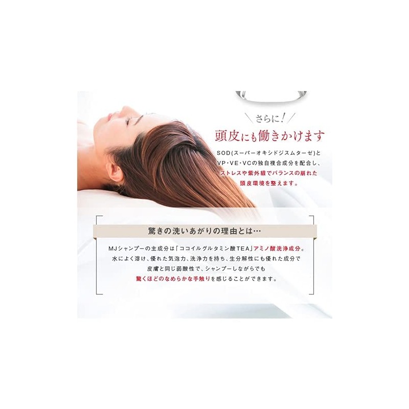 - Amazingly moisturizing with just shampoo ★★Double hair repairing ingredients★★ This product contains a double blend of marine collagen and amino acids, which are slightly derived from the skin of salmon found in Japan. Formulated with a proprietary combination of SOD (Super Oxidodismutase) and VP, VE, and VC to create a balanced scalp environment with stress and UV rays. It also contains sodium hyaluronic acid. Keeps hair fresher for longer periods of time. Does not contain petroleum synthetic surfactants; allergy patch tested. *Not all people are allergic to them