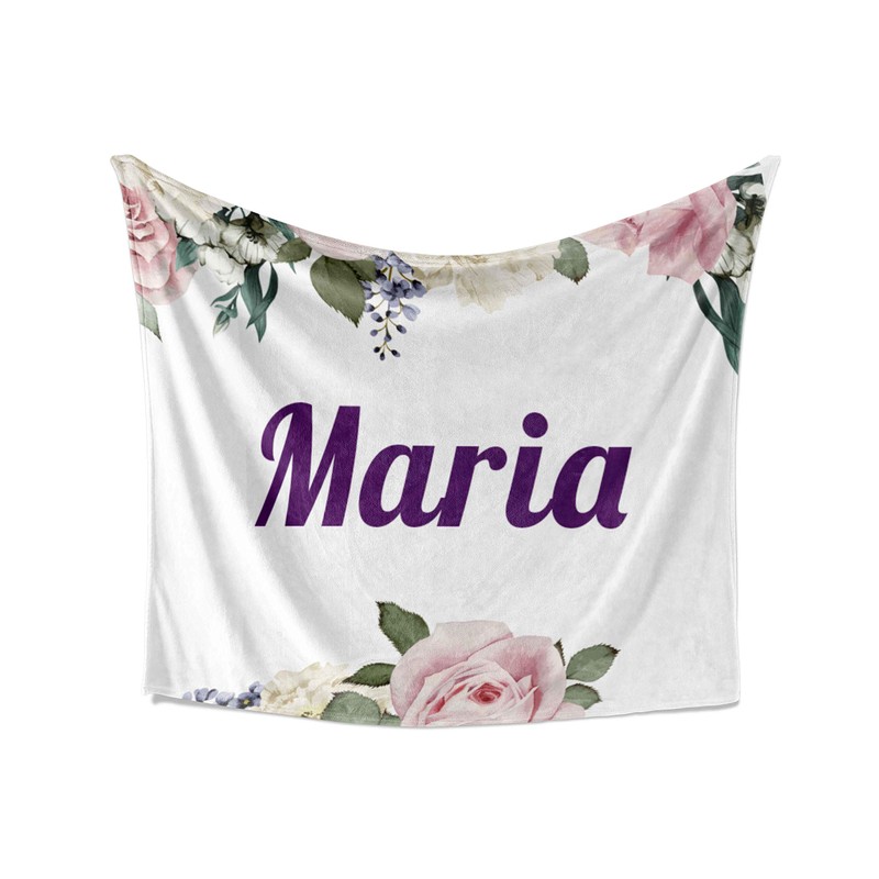 Maria Blanket - Personalized Plush Fleece Flower Throw with Name, Custom Soft Cozy Warm Blanket, Customized Birthday, Holiday Present Idea, 50x60 Inches