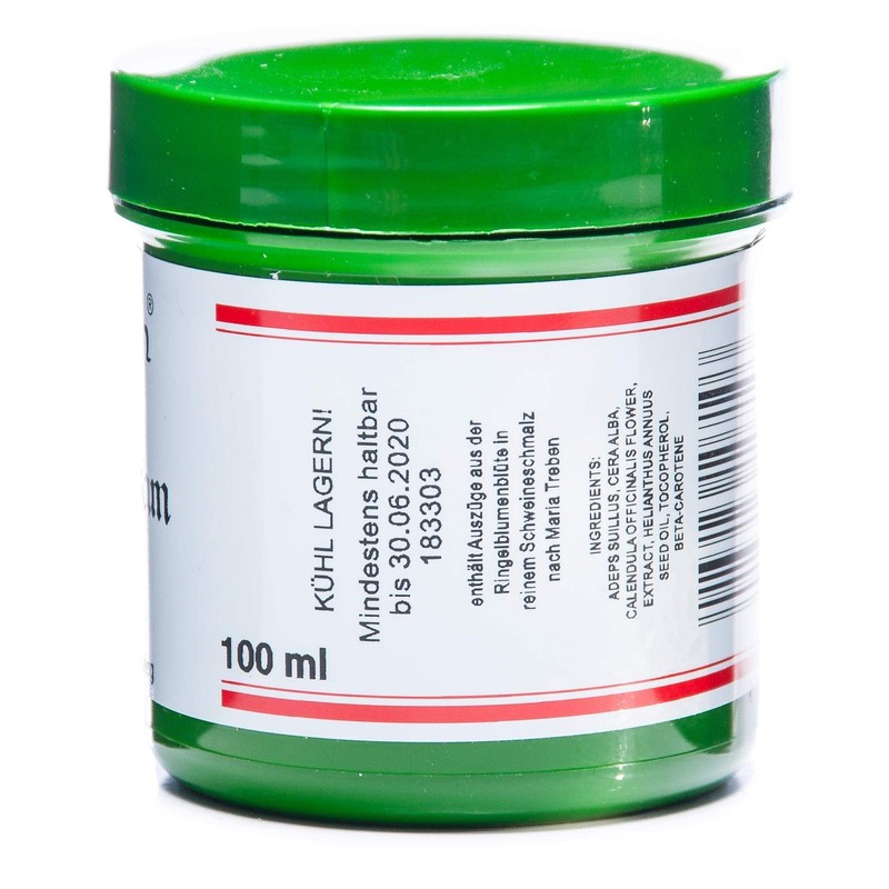 Contains extract from the marigold flower in pure pork lard according to Maria Treben.