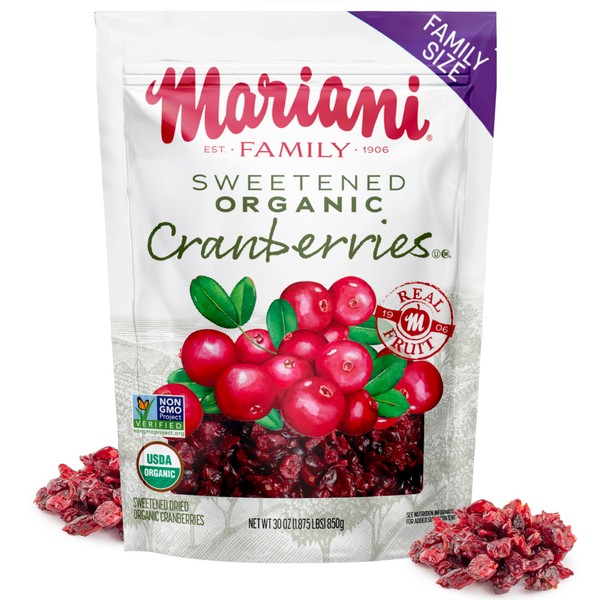 Mariani Organic Dried Cranberries, 30oz, Bulk Family Size Value Pack, Sweetened Organic Cranberries Dried Fruit, Vegan, Gluten-Free, Preservative-Free, 100% USA Grown, Naturally Sweet & Tangy