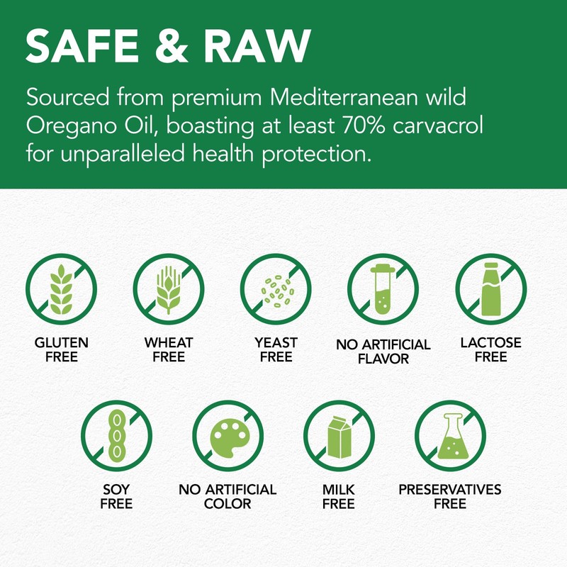 - Natural Ingredients: The best natural source of our wild oregano oil from the Mediterranean, rich in at least 70% carvacrol, including thymol, thymol, peppermint and other organic compounds. Our oregano oil provides the highest level of protection for your health