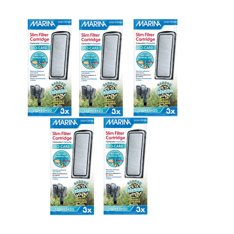 - 15 Total Cartridges(5 Packs with 3 Cartridges per Pack)Marina Slim Filter Carbon Plus Ceramic Cartridges.