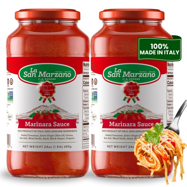 La San Marzano Marinara Sauce, 24 oz, Pasta Sauce Made in Italy, All Purpose Tomato Premium Quality, All Natural, Mediterranean Diet, Non GMO, Vegan, Gluten Free