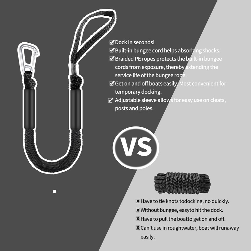 - SHOCK ABSORPTION: Stretchy bungee design helps absorb impact from waves and boat movement, protecting both vessel and dock