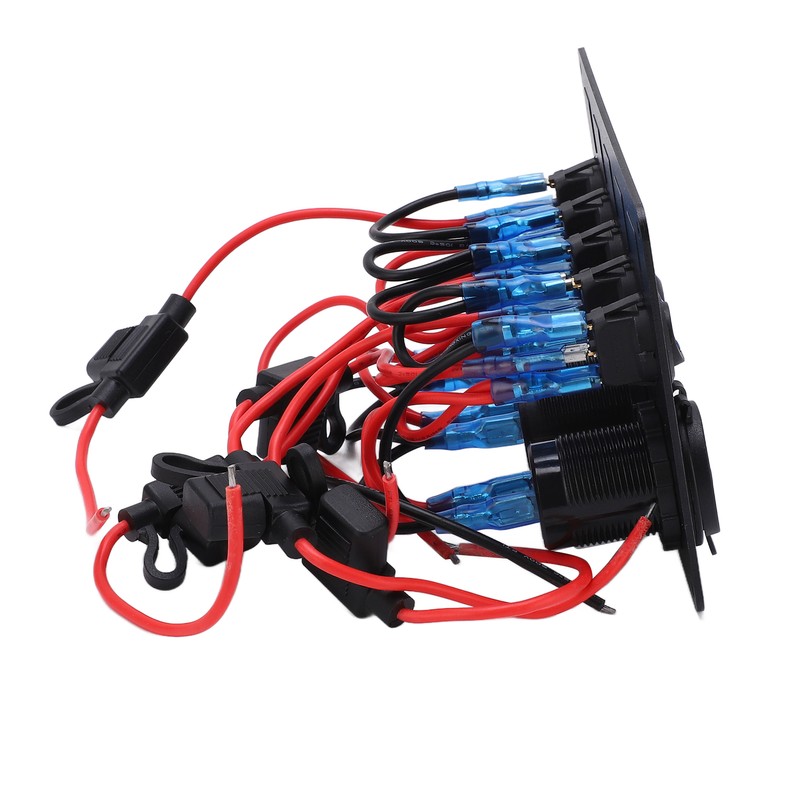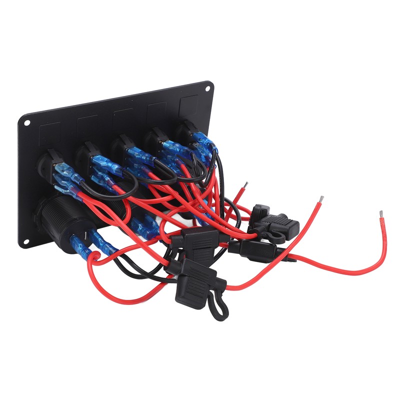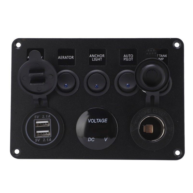 1、High Efficiency Protection: 5 LED toggle switches with overload, over current and short circuit protection for protection at any time. 2、Multi Function: Protecting the panel from overheating, overcurrent, overcharging and short circuit. 3、Easily Replace: Simple installation and use, no complicated procedures, easy replacement. 4、Features: The input voltage of the voltmeter is 12‑24V, the output voltage is 5V, and the output current is 2.1A. 5、Wide Application: Can be installed in 12V and 24V vehicles, yachts, ships, caravans, trucks, etc.