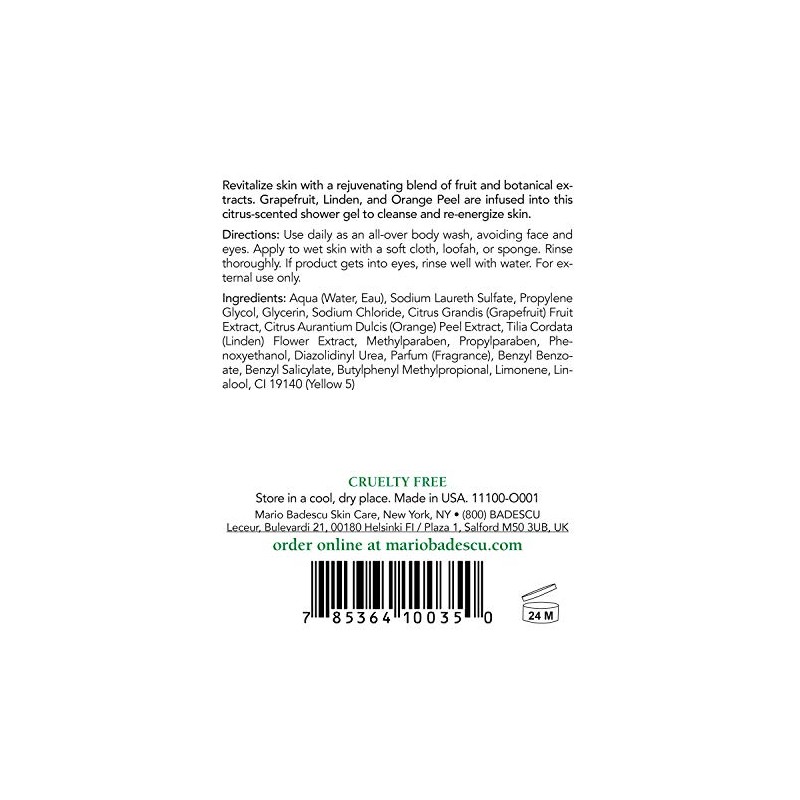 Mario Badescu Citrus Body Cleanser - Lightweight Shower Gel Soap with Grapefruit and Orange Peel Extracts - Fresh and Moisturizing Body Wash for Men and Women, 16 Fl Oz