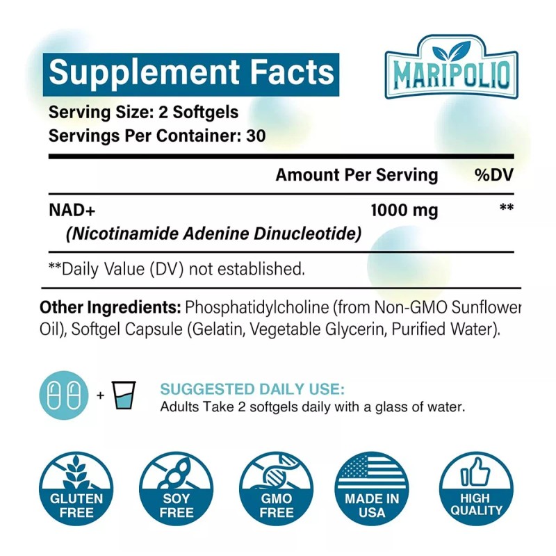 Maripolio Nad+ Liposomal Nicotinamida 1000mg 60 Capsulas Eg Nn26 Sabor Nd