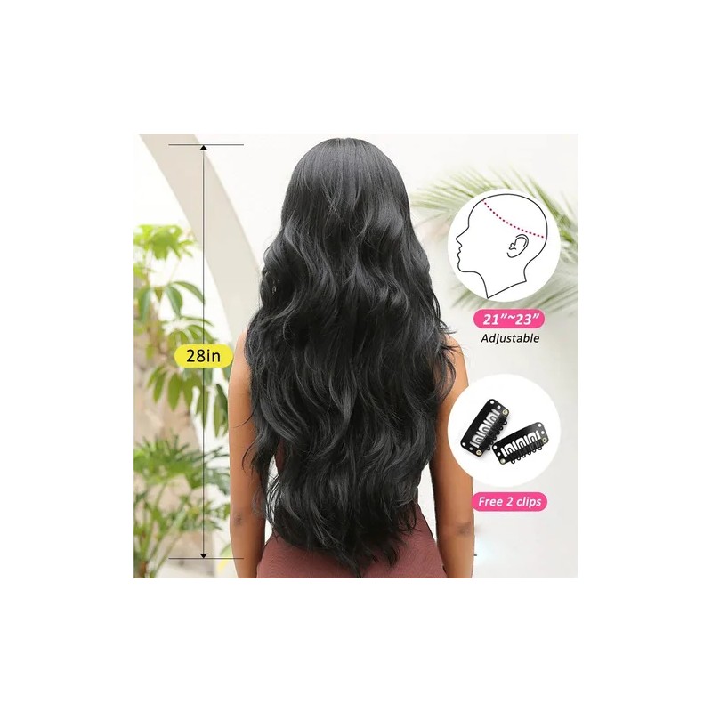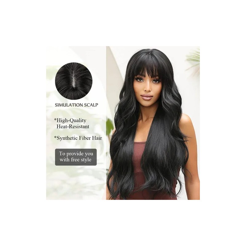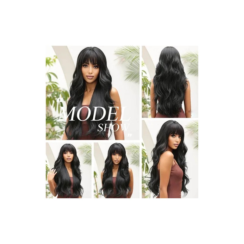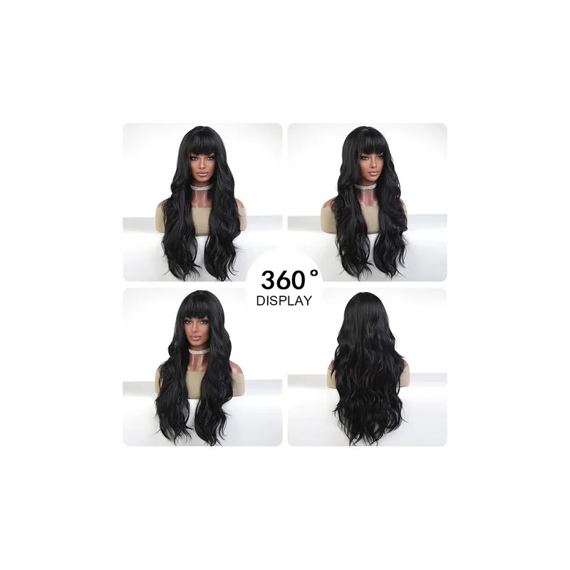 Esta peluca larga ondulada asimétrica con flequillo está hecha de fibra de poliéster, diseñada para imitar el aspecto natural y el tacto del cabello real. Perfecta para llevar a diario o en fiestas, ofrece una opción elegante y versátil para las mujeres que buscan una solución de reemplazo de cabello realista y a la moda.