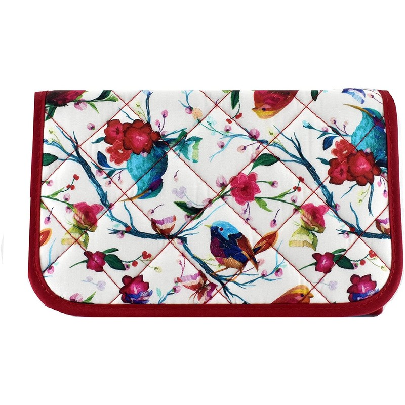 Marisa D'Amico Travel Portable Purse Size Makeup Case Cosmetic Bag with Mirror, Quilted Cotton