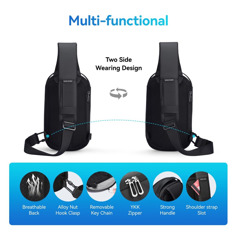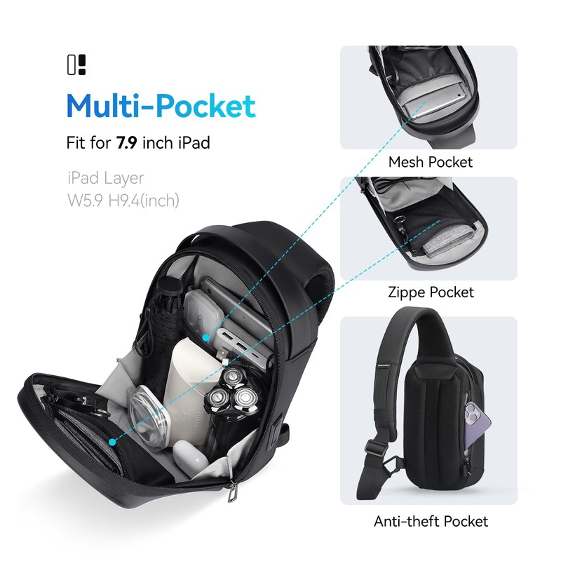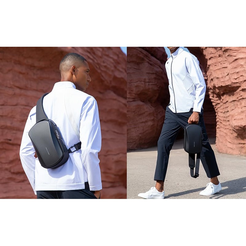 Mark Ryden Men's Hard Shell Sling Bag, Anti-Cut and Anti-Impact Shoulder Bag with USB Charging Port, Waterproof Shoulder Bag for Travel, Sports, Cycling - Black, black