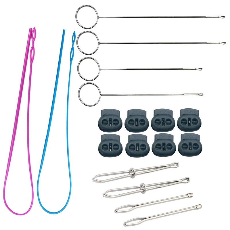 - Packing Include: 2pieces plastic drawstring threaders(1red+1blue), 2pieces metal drawstring threaders, 2pieces metal tweezers, 4pieces sewing loop turner, 8pieces cord locks