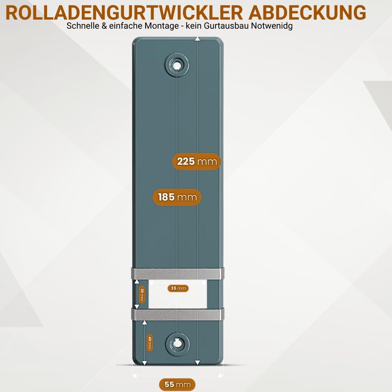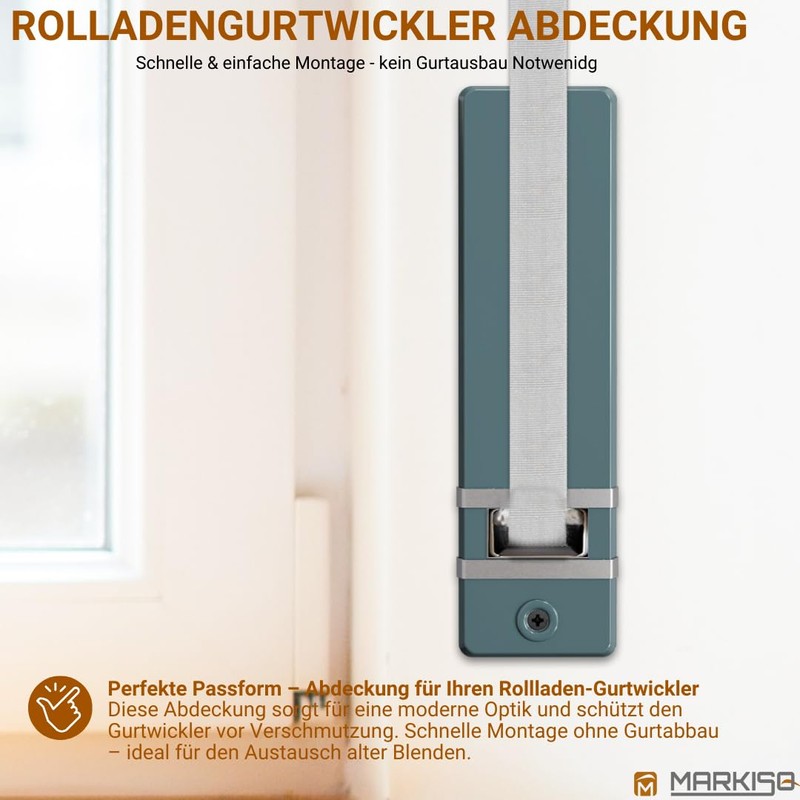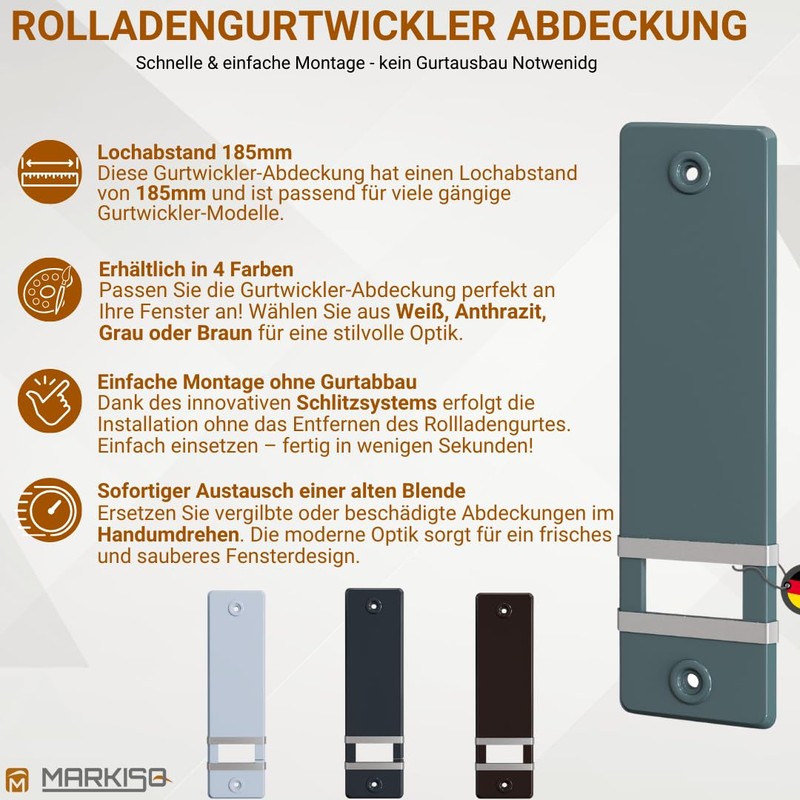markiso® Roller Shutter Belt Cover [Pack of 1] - Hole Spacing 185 mm | Belt Winder Cover Made of Plastic | Easy Assembly without Belt Removal | Belt Winder Cover for Maxi Belts | Colour Grey