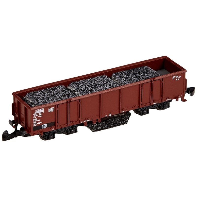 Track Cleaning Car. Gauge: Z. Era: V. Prototype: Type Eaos gondola. Model: "Jorger System" track cleaning car. This freight car has a special spring- loaded holder on the underside for a special felt pad. A special felt pad is already installed on the car. 2 replacement felt pads are included with the car. The gondola has additional weight. Length over buffers 63 mm / 2-1/2". The "Jorger System" track cleaning car gently cleans the railhead of the track with a special felt pad. This means that this track cleaning car can be run constantly as part of a train and provides completely independent cleaning of the track. A spring-loaded holder for a special felt pad is mounted on the underside of the car. The weight in the gondola provides an extra light downward pressure for the pad. This special felt pad can be removed easily by hand from its holder and replaced with another pad. Two additional special felt pads are included with the track cleaning car. Dirty felt pads that have been replaced on the car can be used again. Just put them in a small cloth bag and include them in your next wash on laundry day. We still recommend that you also clean the track by hand at regular intervals.
