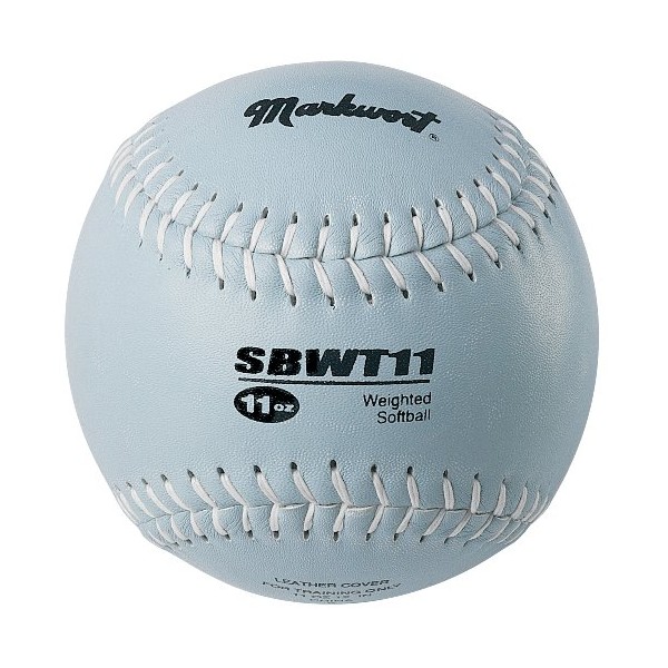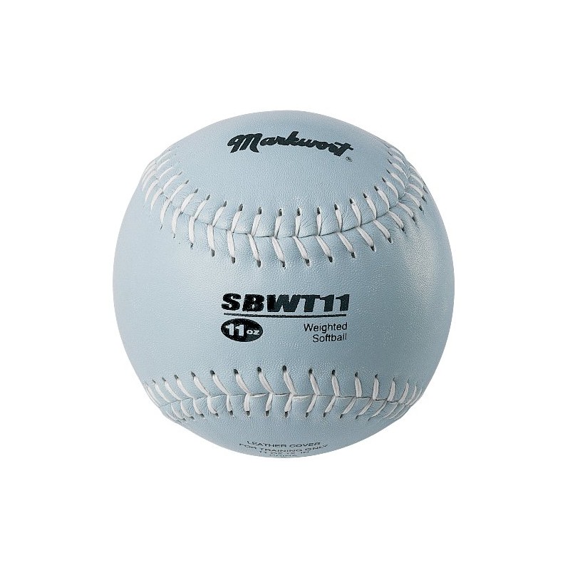 - Split leather cover, white stitching, weighted cork core. As you train, gradually increase the weight of the ball as you build strength in your throwing arm.