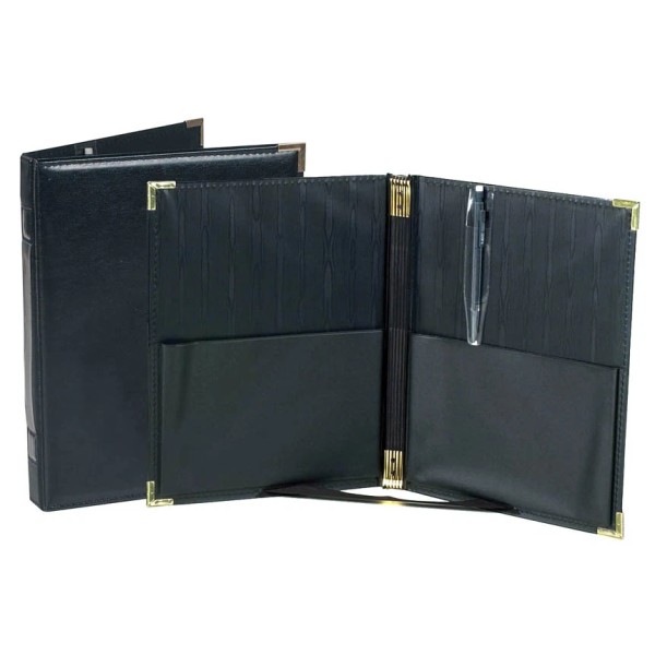 Originally designed as a performance folder for professional choirs, this top-of-the-line legacy folder includes a padded exterior, sewn edges, brass corners, a pencil pocket with mechanical pencil included, internal retention strap and external clear hand strap on the spine.