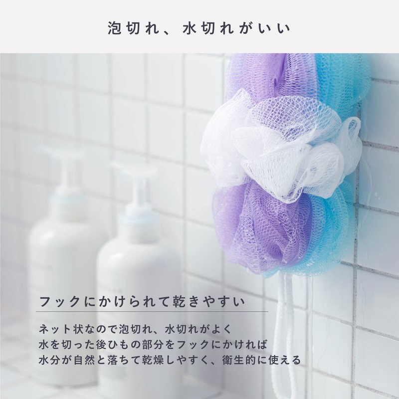 Marna B873B Double Bubble Body Scrubber, Back Washable, Net Body Sponge, Gentle on the Skin, Design: Mix, Color: Blue