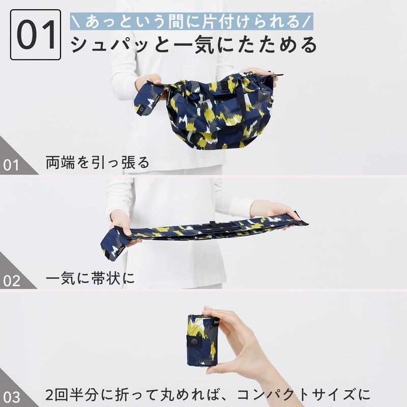 • (Spat folds at once) Pull both ends to instantly become a banded look. Folds up easily Compact size that makes it easy to carry even after packing. Gusset-free construction allows you to change the shape of the bag to fit your luggage