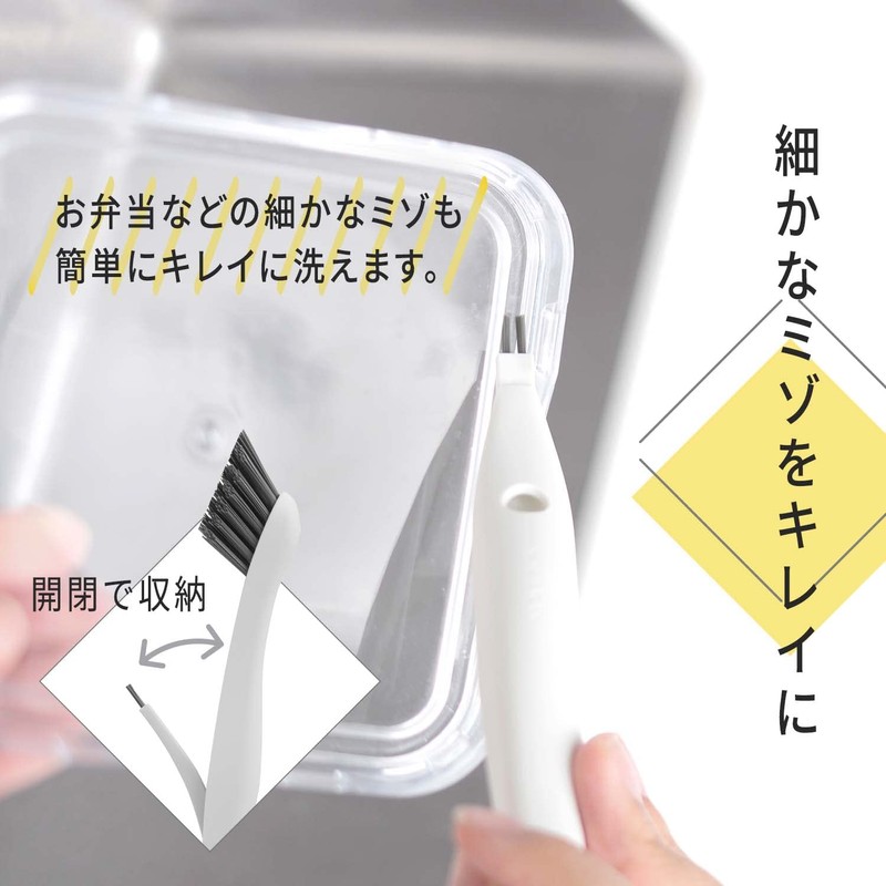 - Multi-functional Brush with 3 Uses: V-cut brush: Angled brush removes dirt from the back of the faucet and corners and crevices of other areas Detail Brush: Get dirt and grime in small areas such as bento box lids.It can be opened and stored within the handle. Rear Part is a Scraper: Perfect for removing stickers and removing sticky stains around the stove top