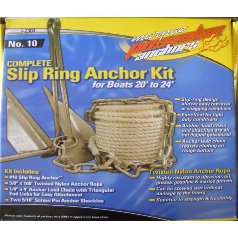Marpac 7-2303 Poseidon Slip-Ring 10 Lbs Anchor KIT Rope 3/8-Chain Boat 20'-24'
