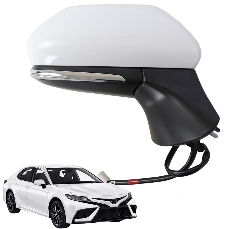 - DIRECT REPLACEMENT: Mirror Assembly compatible with 2018 2019 2020 2021 2022 2023 2024 for Toyota Camry , Right Passenger Side/ 7 Pin Harness /Power Adjustable Glass/Rear Vier Mirror With Signal Light/Heated/Manual Fold (Without power fold)/|BSM (Blind Spot Monitoring) /WHITE