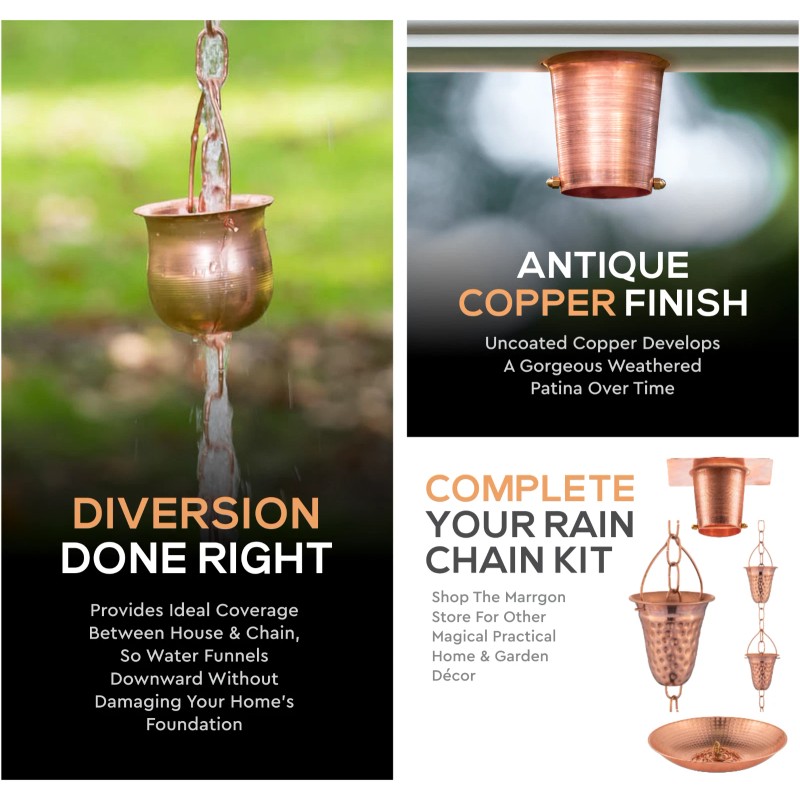 Marrgon Copper Rain Gutter Diverter – 2 Inch Durable Rain Chain Adapter & Hanger
