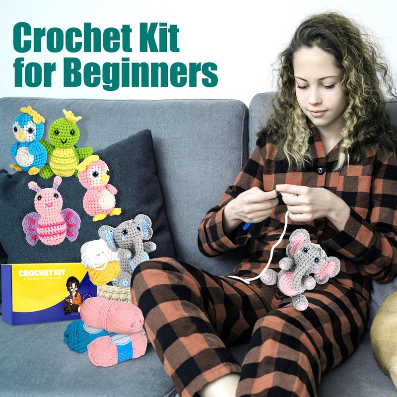 Suitable for beginners crochet kit, the crochet kit contains everything you need to start crocheting: yarn, crochet hook, stuffing, eye, needle, stitch marker, scissors, crochet instructions, etc., and there are step-by-step learning videos for beginners to learn.
