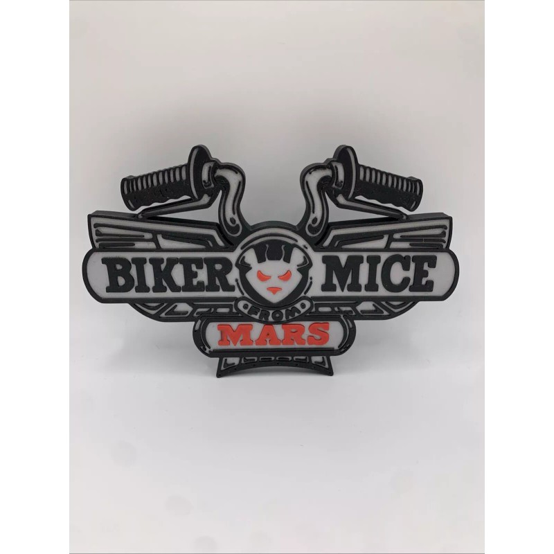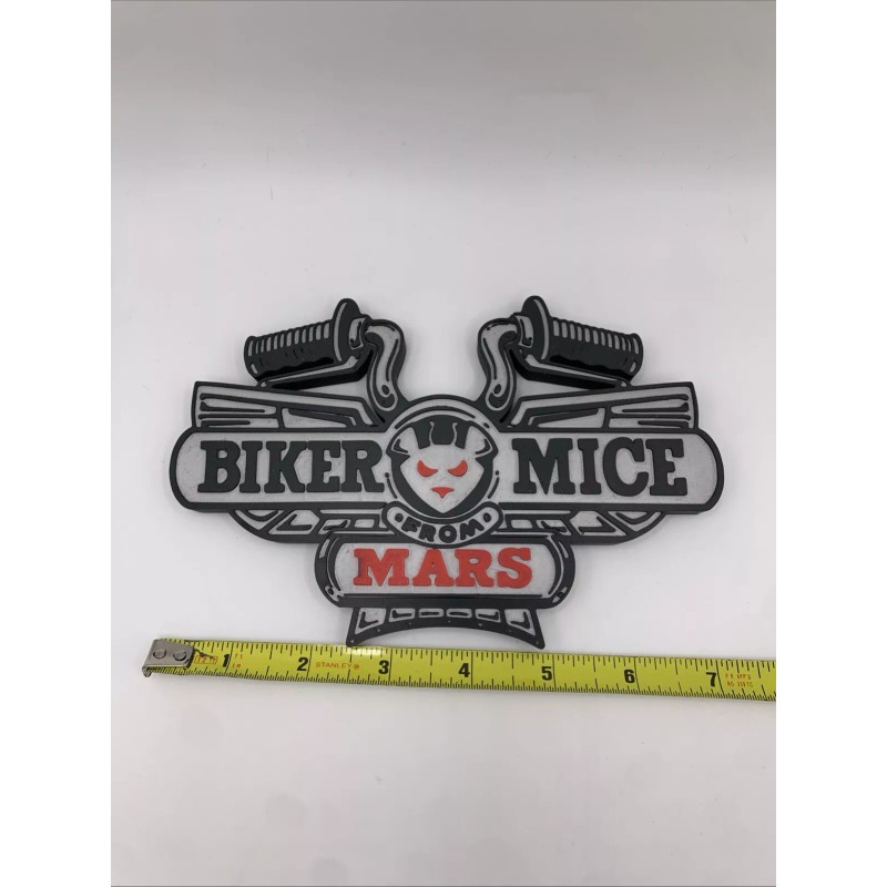 The "Biker Mice From Mars Sign" features the brand Mars and is a type of sign. It is a collectible decorative plaque or sign featuring the Biker Mice From Mars theme.