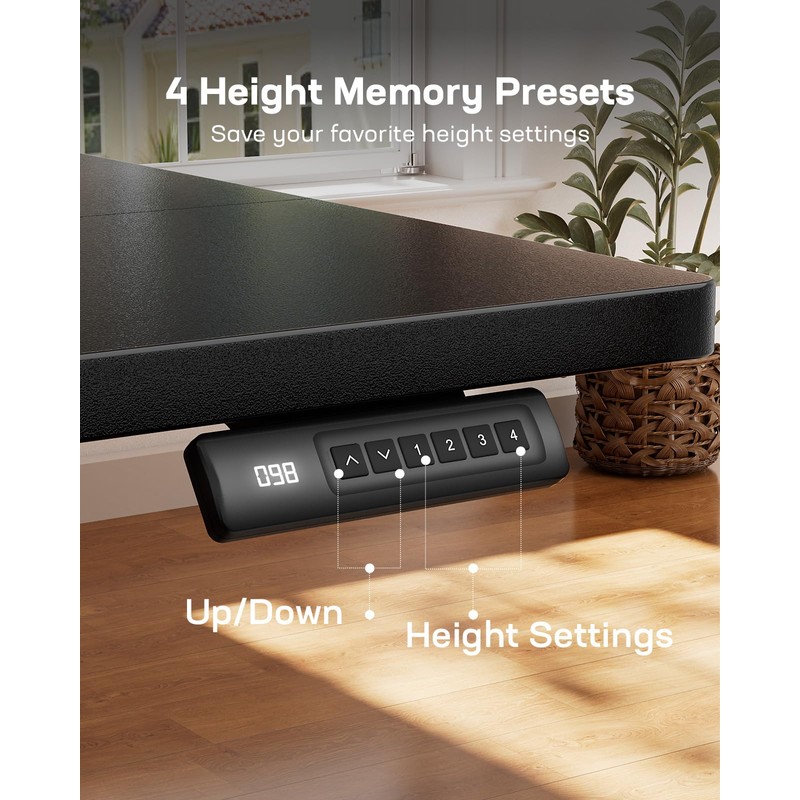 - 4 Memory Height Presets: The adjustable height desk features a user-friendly control panel with four programmable preset buttons, allowing you to transition between your favorite height settings throughout the day. Switch from sitting desk to stand up desk with just one button press.