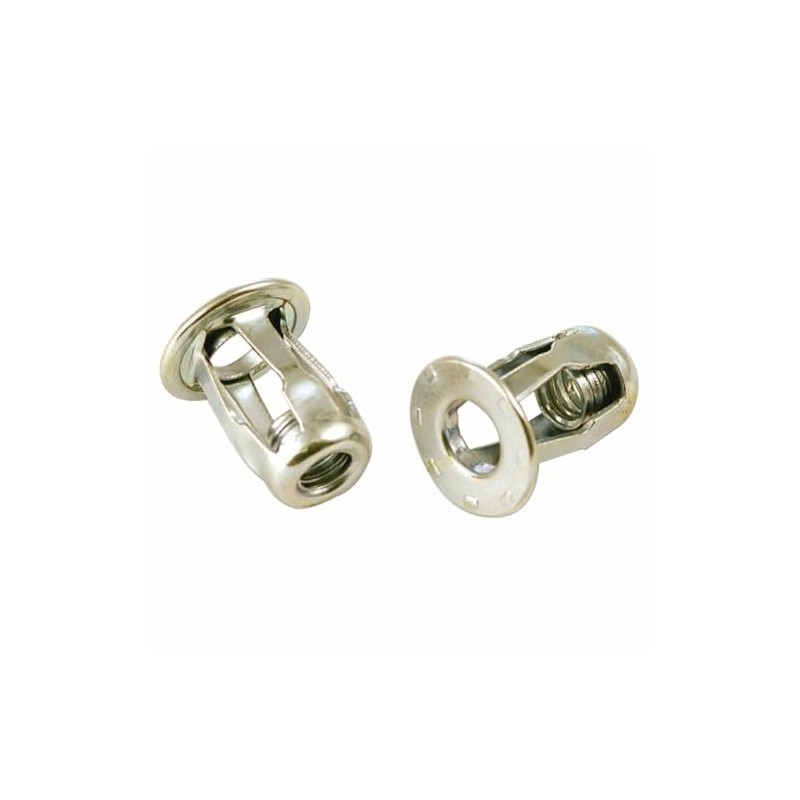 - Quad-leg rivet nut used for light duty thin or soft/brittle material will accommodate slightly oversized hole with large back side footprint