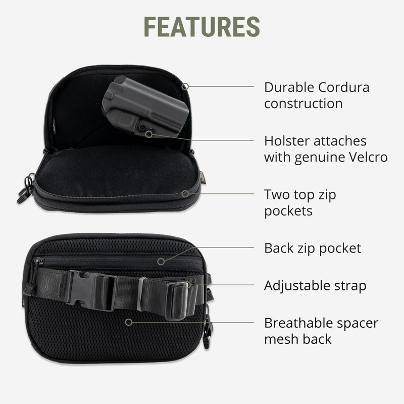 - Quick Deploy Access System - Takes only seconds to deploy with secure Velcro holster attachment that accommodates any hook-and-loop capable holster for reliable personal protection