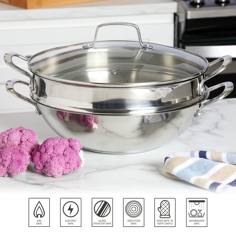 - WHAT'S IN THE BOX: One 12-inch stainless steel everyday pan with steamer insert and lid