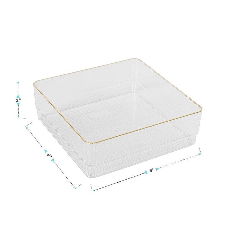 Martha Stewart Kerry Plastic Stackable Office Desk Drawer Organizers, 6" x 6", 4 Pack, with Gold Trim