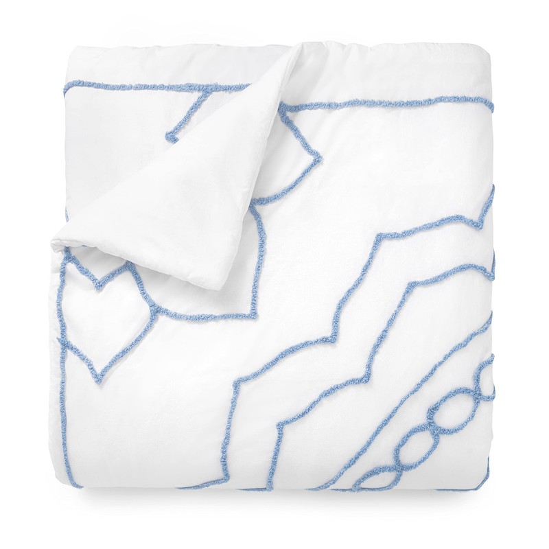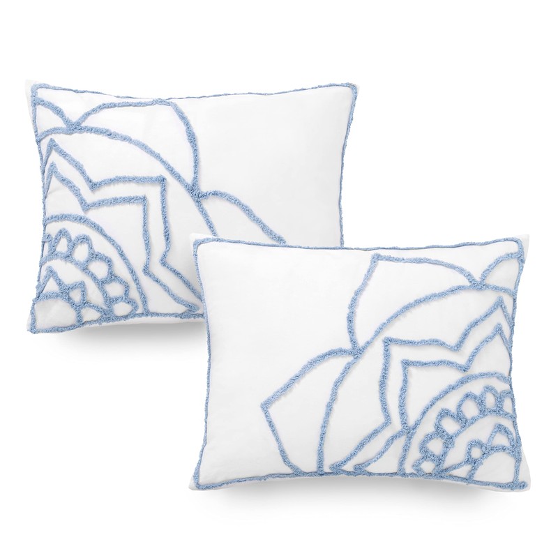 - FIND YOUR PERSONAL ZEN with the Sophia Medallion Chenille Duvet Set by Martha Stewart. Features a large central medallion pattern of beautiful chenille tufting available in three soothing color options; white, soft blue, and grey & white. Reverses to a solid for effortless coordination and comfort. Duvet and shams features knife edging for a luxe finish. The pillow shams include an easy-to-use hidden zipper closure to secure pillow.