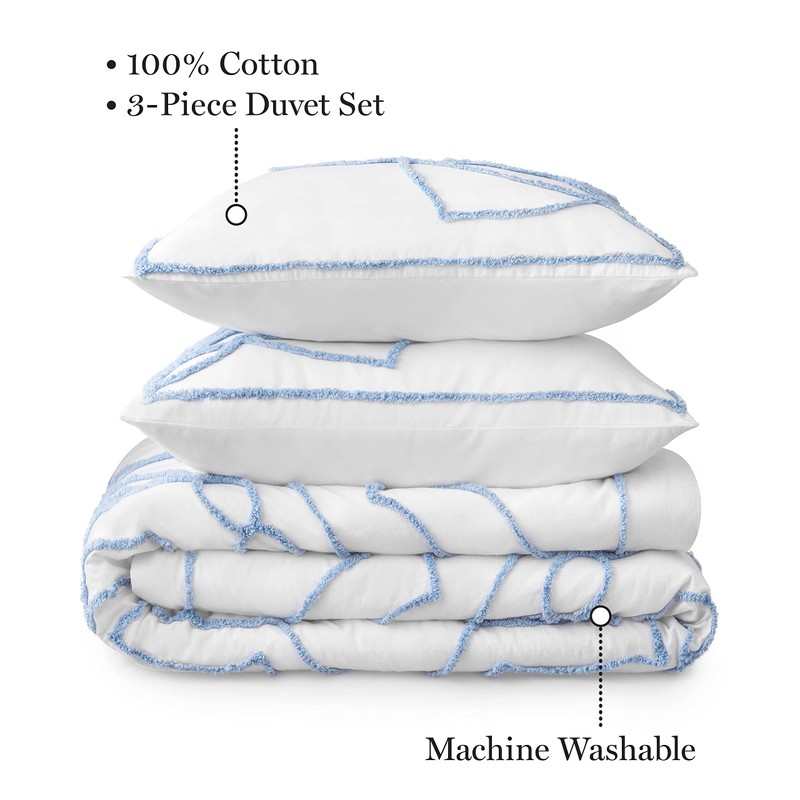 MARTHA STEWART Sophia Medallion Chenille Duvet Cover Queen Size, 3 Piece Set-1 Duvet Cover, 2 Pillow Shams,Cotton-Percale,Soft, Reversible, Easy Wash, All Season 90"x92" With Button Closure, Soft Blue