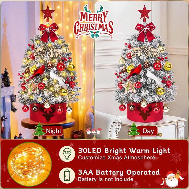 • 【Light Up Your Christmas】Let our mini Christmas tree with lights add luster to your holiday celebration. Equipped with 30 LED string light, this exquisite Christmas tree not only lights up your space but also brings an abundance of Christmas spirit. Operated by 3 AA batteries (not included), allowing you to place the tree anywhere without worrying about power outlets.