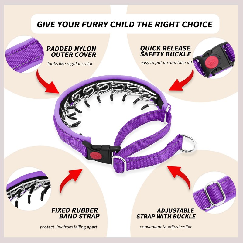 - Sturdy Structure & Durable Materials: Built to withstand rigorous activity, the Dog No Pull Collar features a dual-layer construction, a rust proof and waterproof stainless steel inner chain links and a full surround shock-absorbent neoprene padded and nylon outer cover. Combination of two layers adds extra safety to prevent Anti Pull Dog Collar from falling apart, more sturdy and durable
