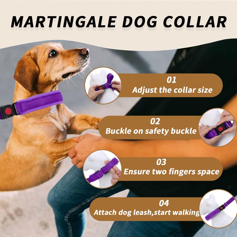 Martingale No Pull Dog Collar for Large Medium Small Dogs, Heavy Duty Nylon Reflective Adjustable Anti Pull Slip Collar with Buckle for Training Walking S Purple