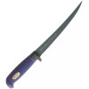 Martef Fillet. 12.25" overall. 7.5" black stainless fillet blade. Blue textured rubber handle. Plastic ferrule. Black plastic sheath. Boxed with hanging tab. -