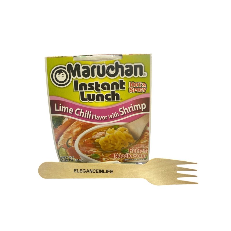 Maruchan Instant Lunch Hot & Spicy Lime Chili Flavor with Shrimp Ramen Noodle Soup 2.25 oz With Eleganceinlife Wooden Fork Pack of 2