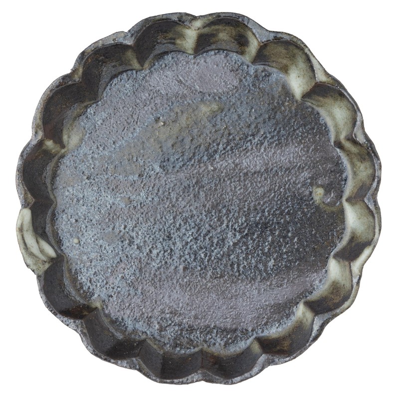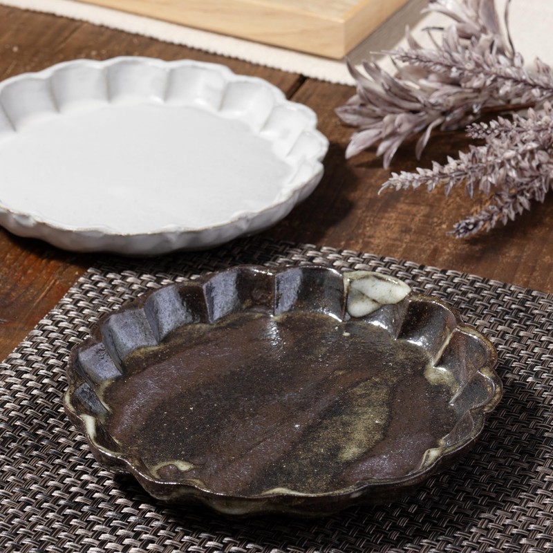Marui Pottery MR-3-4249 Shigaraki Ware Hechimon Plate, Plate, Diameter Approx. 5.9 inches (15 cm), Black Rust Ring Flower