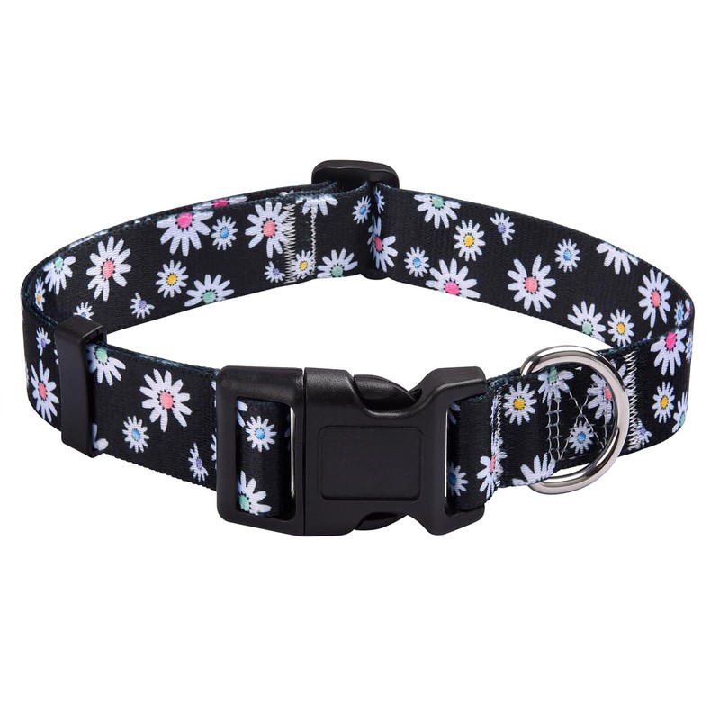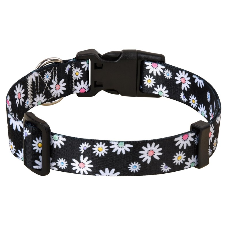 MarukoPet Dog Collar, Adjustable, Soft and Comfortable Dog Collar for Small, Medium, Large Dogs, Bohemian, Flowers, Geometric, Tribal Design (Black Daisy, S)