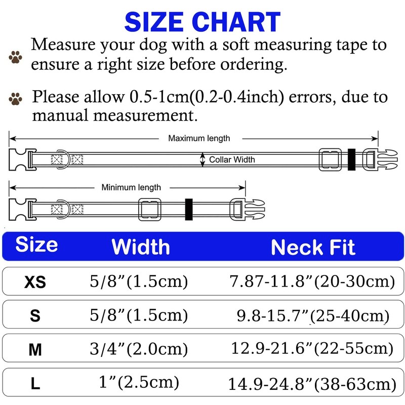 - Attention: Please measure your dog carefully to choose the right collar size. (Usually two fingers space between collar and dog's neck) This helps to prevent your dog from chewing the collar.