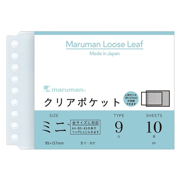 Maruman L485 B7 Clear Pockets for Mini Loose Leaf, 10 Sheets, Set of 10