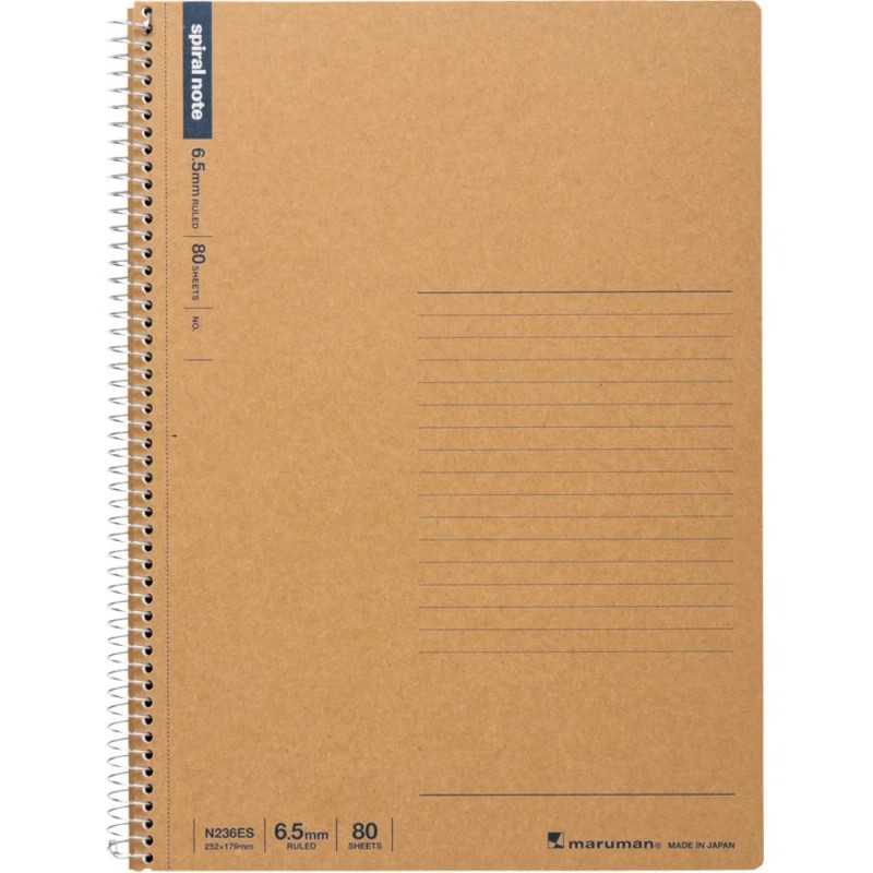 Maruman's SPIRAL NOTE BASIC, college lined B5 size notebook contains 160 pages (80 sheets) of 70g/m2 high quality papers. Each page has 32 lines with 6.5mm spacing between lines and a header for numbering and dating. The first line is a little wider for titling. This basic spiral notebook has the same high quality paper that Maruman is known for with a hard tough cover to hold up in backpacks and bags making this perfect for students and business professionals.Micro perforated pages can be cleanly and easily detached when you want to scan the page and file or make copies.This spiral bound notebook completely lays flat when opened or when the cover is flipped back. This makes your writing much easier. Both ends of the spiral rings are safely looped to prevent the coil from getting snagged.Extra rigid cardboard covers provide additional support for note taking on-the-go. Front cover is designed with lines for titles, subjects or index to pinpoint your notes at a glance.This versatile spiral notebook can be used for many different purposes. It's durable enough to use as a school notebook for each subject throughout the year. Also, it works great as a business notebook for organizing projects or gathering ideas at business meetings. This spiral journal notebook is ideal to use as a day planner to manage your schedule or to keep a diary.Maruman's wire binding notebooks has the same high quality acid free premium papers as their more upscale notebooks with their uncompromising commitment to its quality. High quality white paper promises a superior smooth writing with minimal ghosting and bleed-through. Made in Japan.All BASIC SPIRAL Notebook series comes with Maruman's velvety smooth papers, and are available in a variety of sizes and styles to meet your every need.