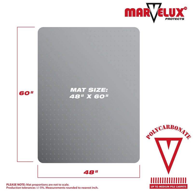 Marvelux Office Chair Mat for Carpeted Floors, Heavy Duty Polycarbonate for Medium Pile Carpets, Rectangular 48" x 60" Clear Office Chair Carpet Protector