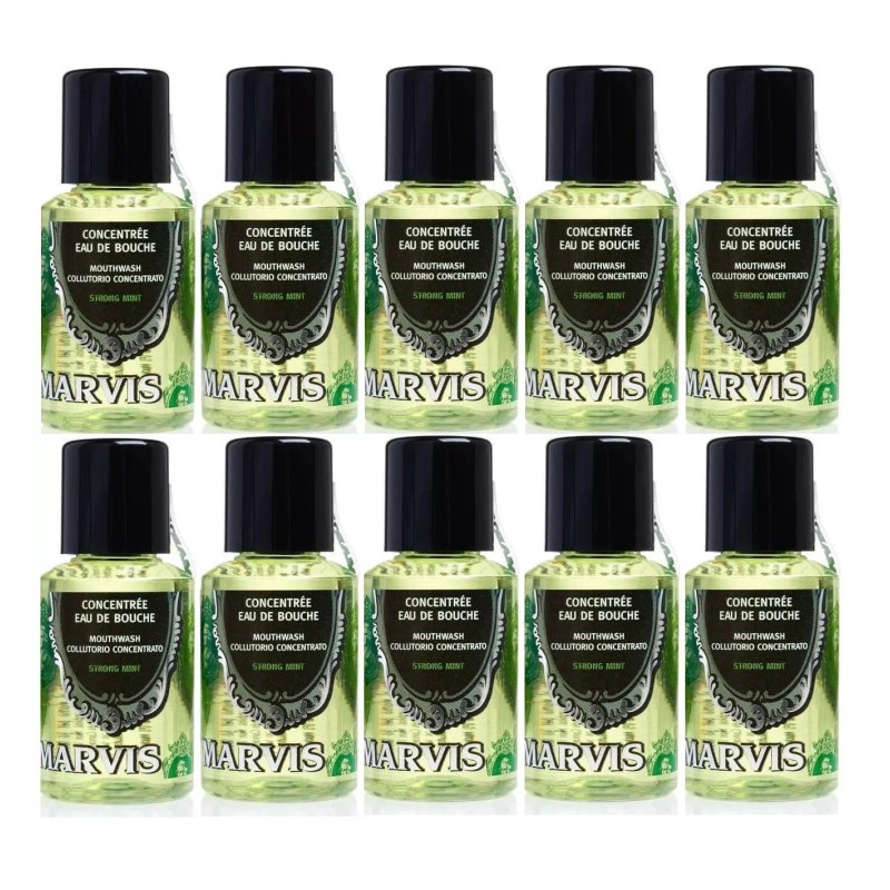MARVIS Eau De Bouche , Mouthwash Collutorio, Strong Mint, 1 fl oz, Pack of 10
