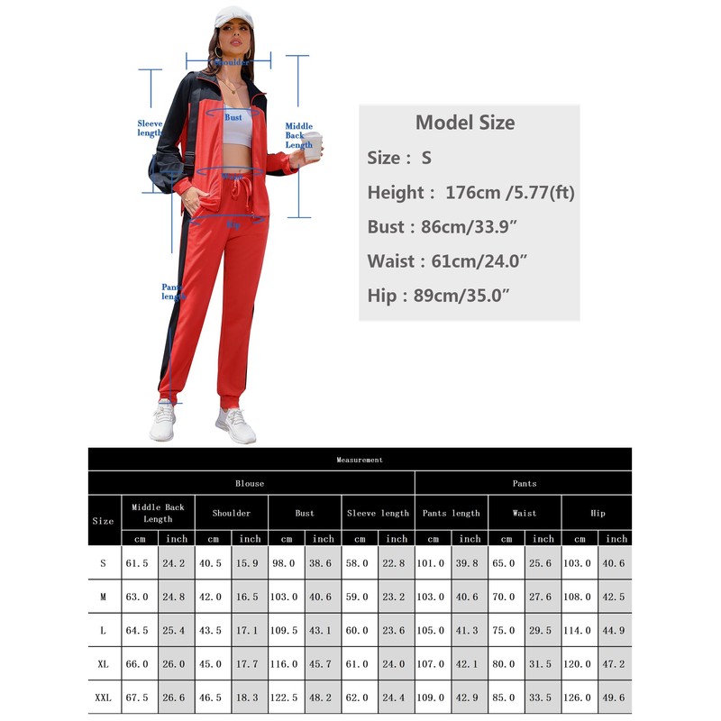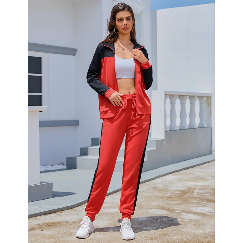 - Stylish Colorblock Design: The sweatsuit set features a trendy color block pattern with a stand collar and a convenient full zip-up front, making it both stylish and functional for workouts or casual wear